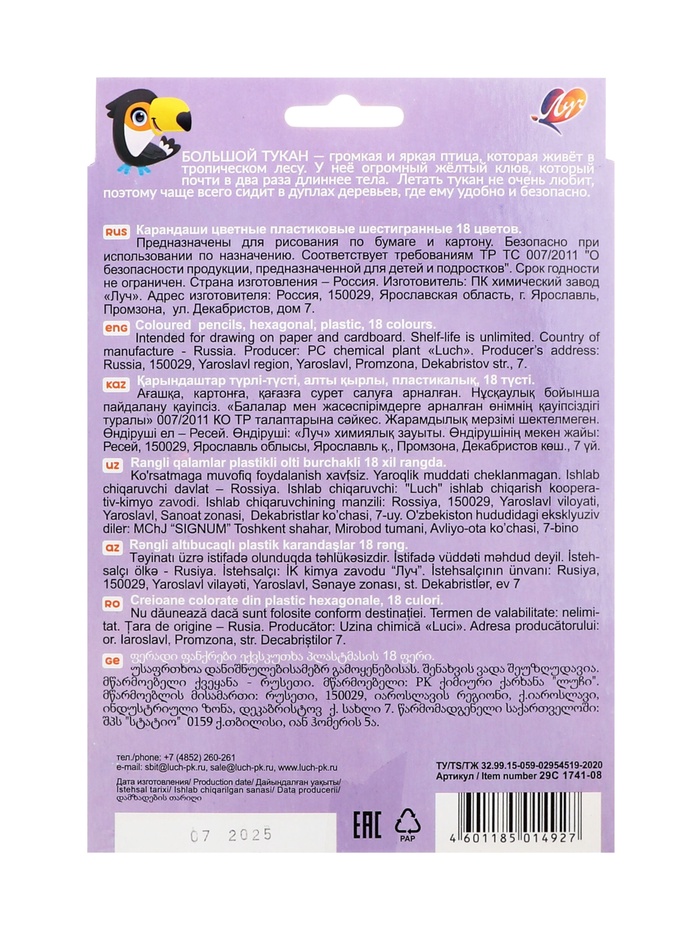 Цветные карандаши 18 цветов ZOO, пластиковые, шестигранные — Характеристики