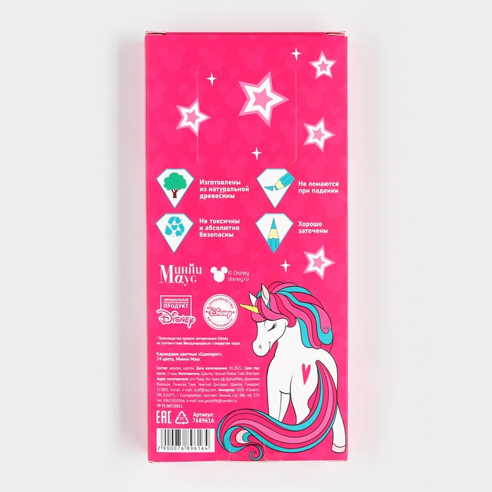Цветные карандаши, 24 цвета, «Минни Маус и единорог» — Характеристики
