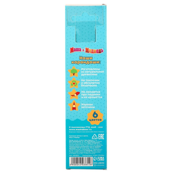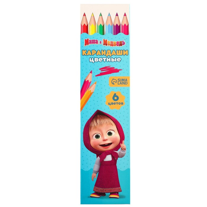 Цветные карандаши, 6 цветов, шестигранные, Маша и Медведь — Характеристики