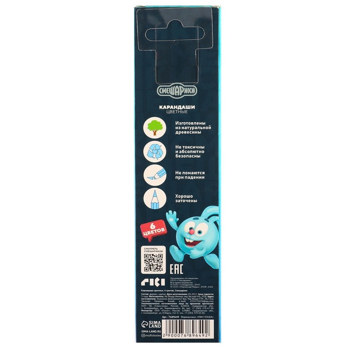 Цветные карандаши, 6 цветов, Смешарики — Характеристики