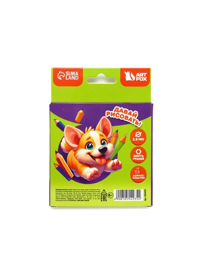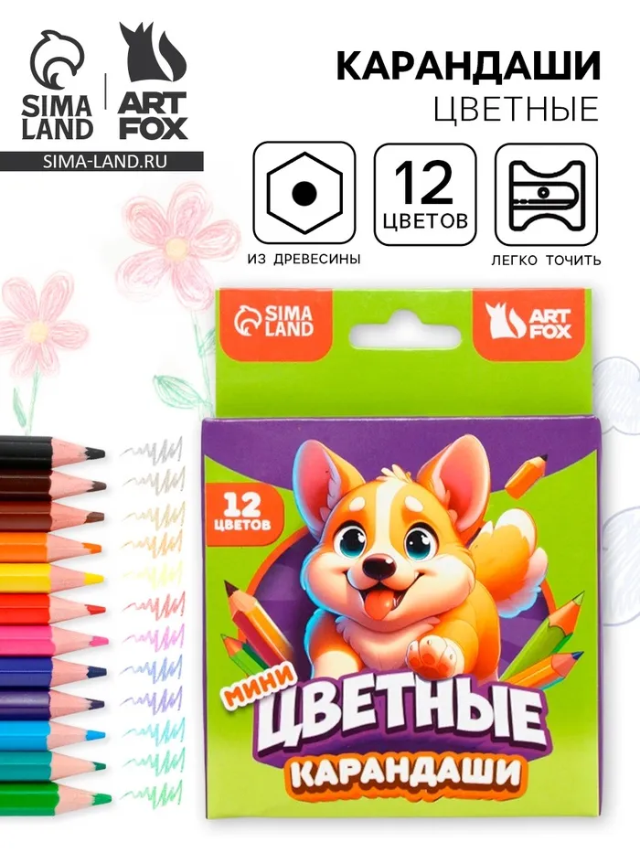 Цветные карандаши, пластик шестигранные 12цв мини «Корги» — Характеристики