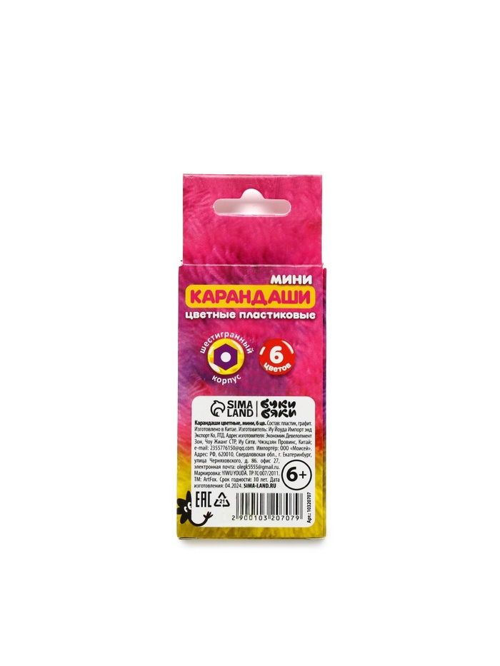 Цветные карандаши, пластиковые, 6 цветов, мини, шестигранные, БукиБяки — Характеристики