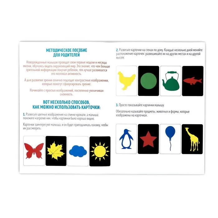 Цветные картинки для новорождённых, 20 картинок, 0+ — Характеристики