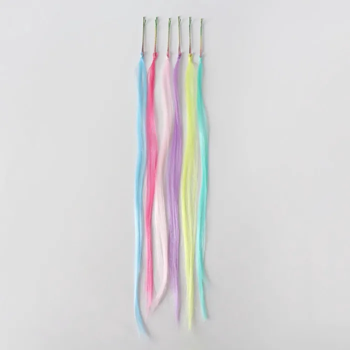 Цветные пряди, на невидимке, 32 (± 1) см, набор - 6 прядей, люминесцентные, разноцветные — Характеристики