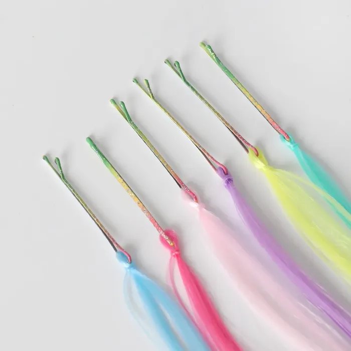 Цветные пряди на невидимке — это яркий и удобный аксессуар для создания праздничного образа. Набор из 6 разноцветных люминесцентных прядей длиной 32 см подходит для девочек, создаёт объёмный и запоминающийся образ без сложного монтажа. Простой способ добавить индивидуальности в повседневный или торжественный образ: от школьной дискотеки до утренника 8 Марта.