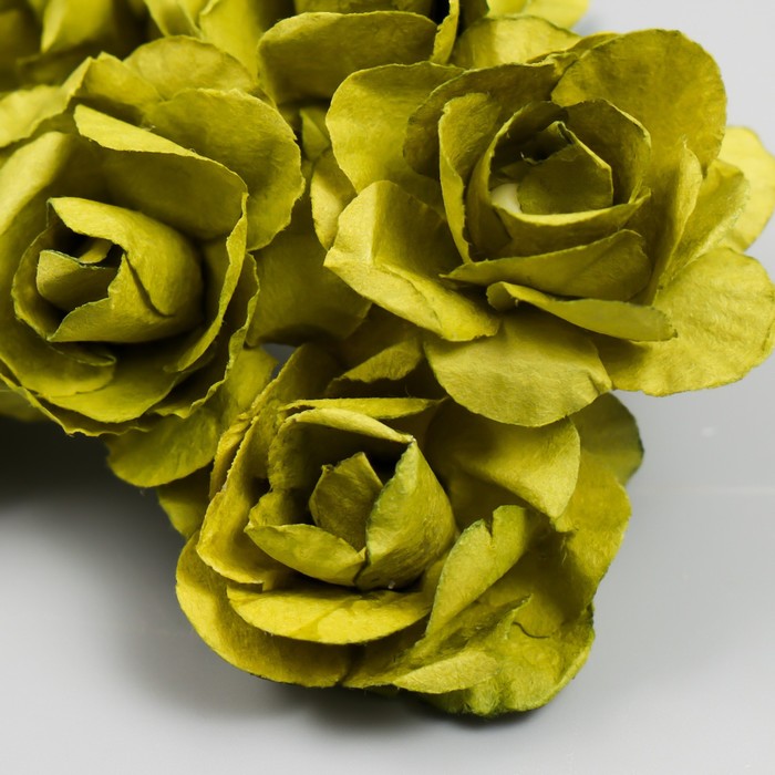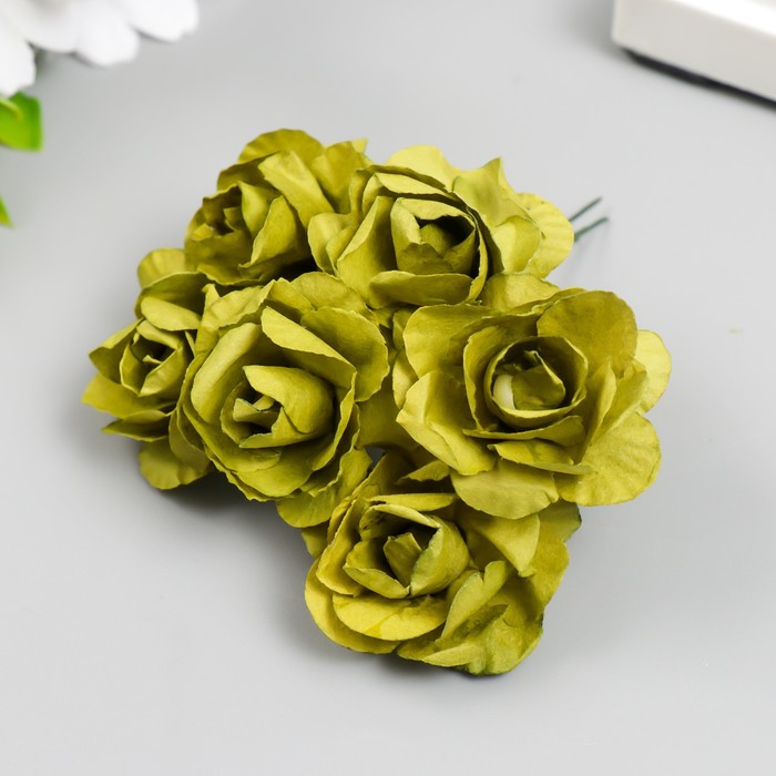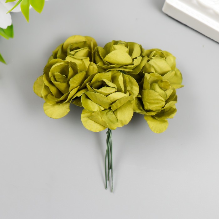 Цветы для декорирования "Чайные розы" 1 букет=6 цветов 9,5 см оливковый