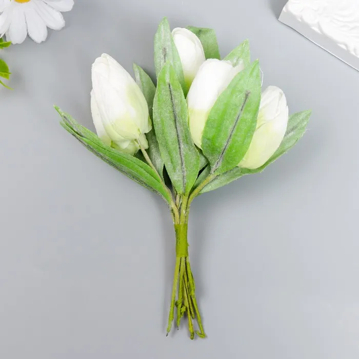 Цветы для декорирования «Заснеженные белые тюльпаны», 1 букет=6 цветов, 14 см