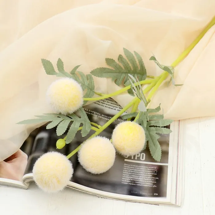 - Естественная красота: лепестки из текстиля выполнены так, чтобы максимально повторять фактуру настоящих цветов. Сферическая форма придаёт впечатление объёмности и живости.