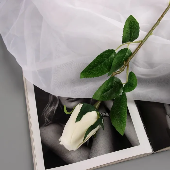 Цветы искусственные «Роза бутон бархат», h=43 см, бутон h=7 см, белые