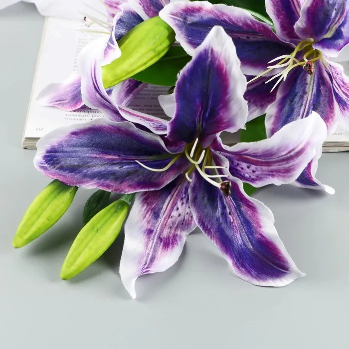 Идеальное украшение для любого пространства: эти фиолетовые лилии украсят любой уголок вашего дома или офиса. Подчеркните свой вкус и стиль, добавив нотки утонченной красоты в окружение. Искусственные цветы – это прекрасная альтернатива живым растениям, не требующая особого ухода.