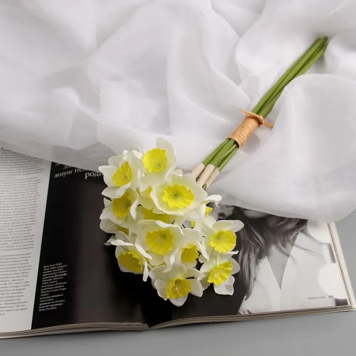 Цветы искусственные «Нарцисс люкс», h=30 см, d цветка - 5 см, 6 штук в связке, бело-жёлтые — Характеристики