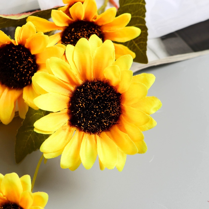 - Правдоподобная текстура: Лепестки из приятного на ощупь текстиля точно передают естественную форму живого подсолнуха. Тщательная проработка деталей создает эффект натуральности даже с близкого расстояния.