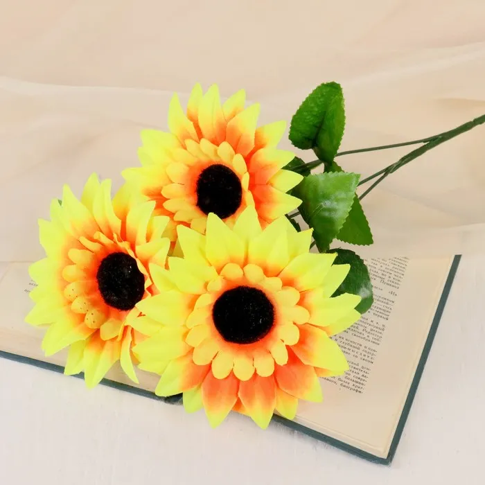 Цветы искусственные «Подсолнухи крупные», три бутона, 13×57 см, жёлтые — Характеристики