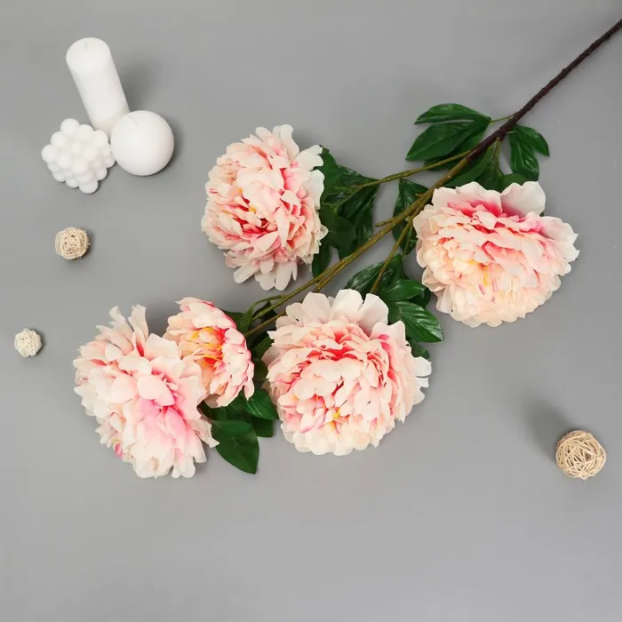 Цветы искусственные «Пион кустовой», 5 бутонов, 15×110 см, кремовые