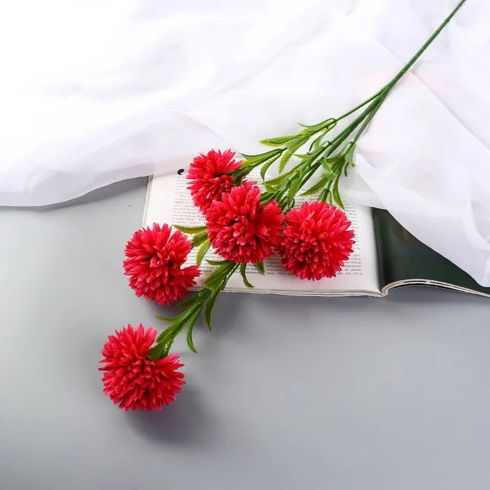 Цветы искусственные «Хризантема помпон», h=80 см, d=6 см, малиновые