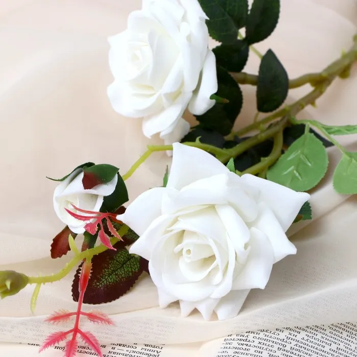 Цветы искусственные «Розы с шипами», 8×40 см, белые — Характеристики
