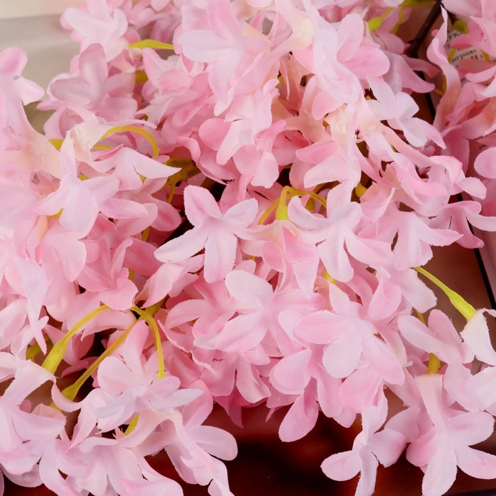 - Пышные розовые соцветия: Каждая кисть искусно собрана из множества текстильных цветков, повторяющих форму и нежность живых. Розовый оттенок – от приглушенного до насыщенного – добавляет в интерьер мягкие, романтичные акценты.