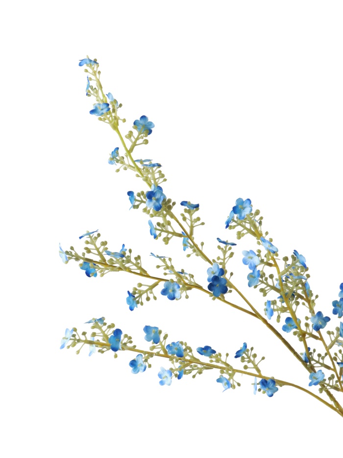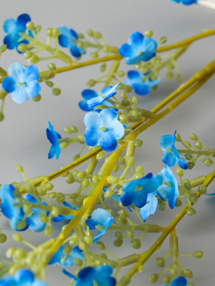 - Реалистичность и нежный цвет: Цветы выполнены из качественного текстиля, который точно передает естественную фактуру лепестков. Мягкий голубой оттенок гармонично сочетается с пастельными, классическими белыми и современными серыми интерьерами, даря им свежесть.