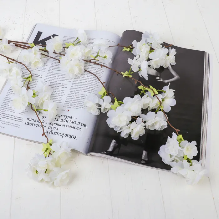 Цветы искусственные "Ветка яблони" 4х124 см, белый — Характеристики