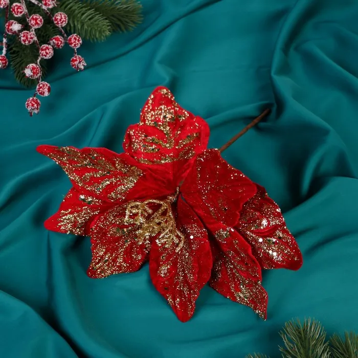 Декор «Зимний цветок», блеск, 23×25 см, красный
