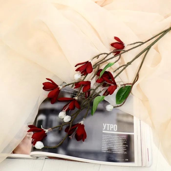 Вид нежной сакуры расслабит после напряжённого дня и подарит заряд положительных эмоций, ведь это прекрасное растение является символом возрождения и лёгкости. Наиболее удачно цветы искусственные «Веточка сакуры», d=5 см, h=70 см, красные будут смотреться в интерьере, выполненном в коричневых, белых, бежевых или серых тонах.