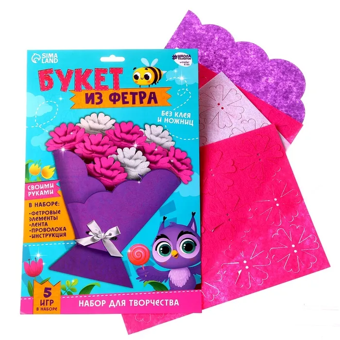 Поделка к празднику — отличный повод провести время с ребёнком и создать замечательную поделку. Детям нравится мастерить из самых невероятных материалов. Оригинальный набор для создания фетрового букета по-настоящему увлечёт ребёнка и станет удачным подарком для талантливого малыша!