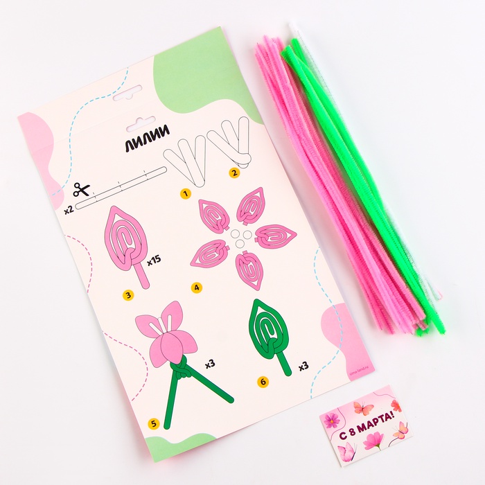 Цветы своими руками из меховых палочек «Букет лилий», набор для творчества на 8 марта — Характеристики