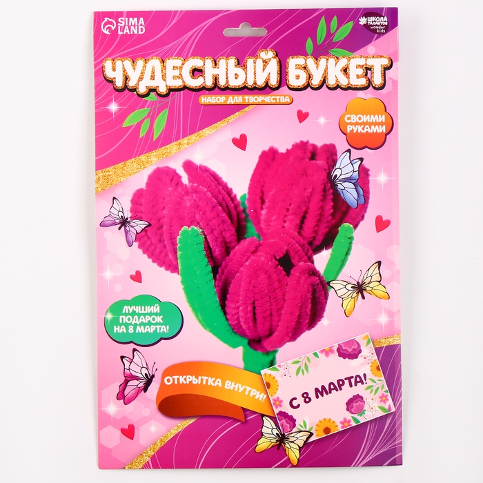 Поделка к празднику — отличный повод провести время с ребёнком и создать замечательную поделку. Детям нравится мастерить из самых невероятных материалов. Оригинальный набор для создания букета из пушистой проволоки по-настоящему увлечёт ребёнка и станет удачным подарком для талантливого малыша!