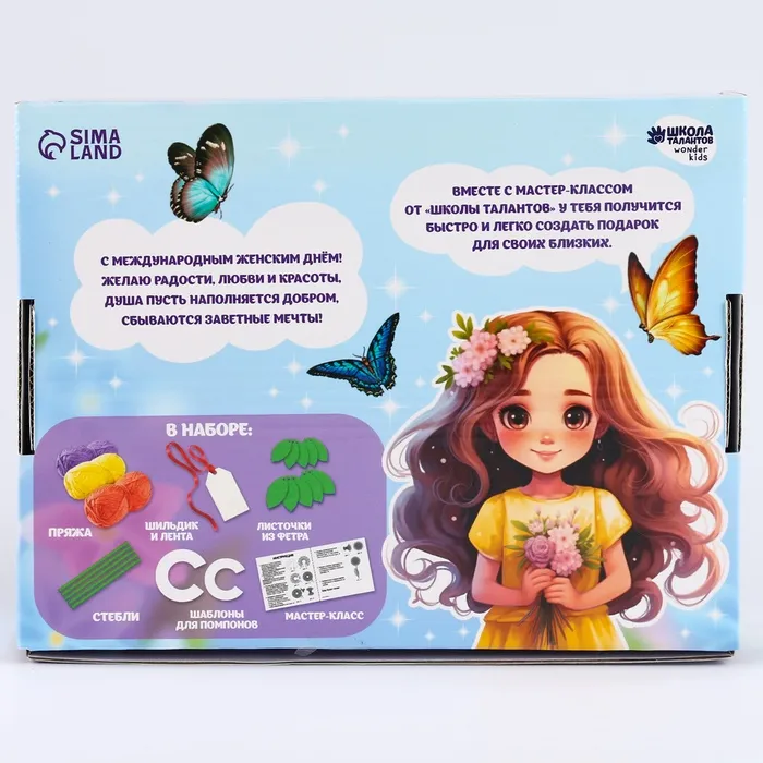 Цветы своими руками из помпонов «Весенний букет», набор для творчества — Характеристики