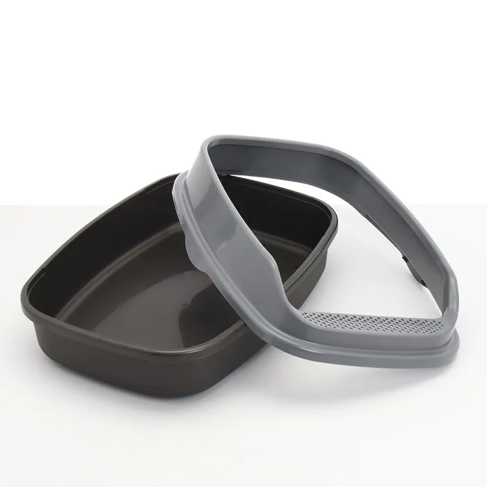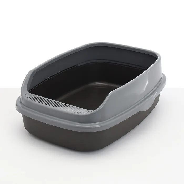 Лоток для кошек с высоким бортом и сеткой - благодаря этому наполнитель не разбрасывается и пол остается чистым.
