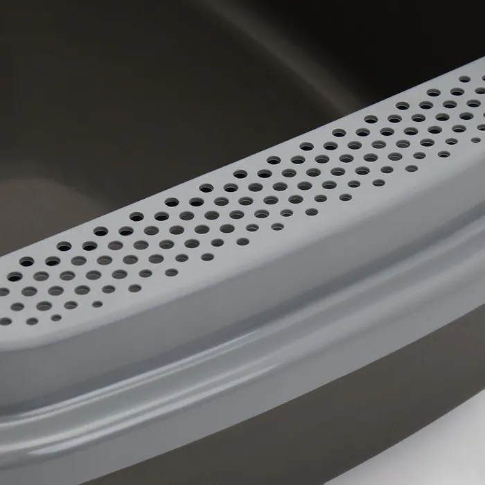 Лоток для кошки имеет современную и эргономичную форму, не имеющую острых углов.