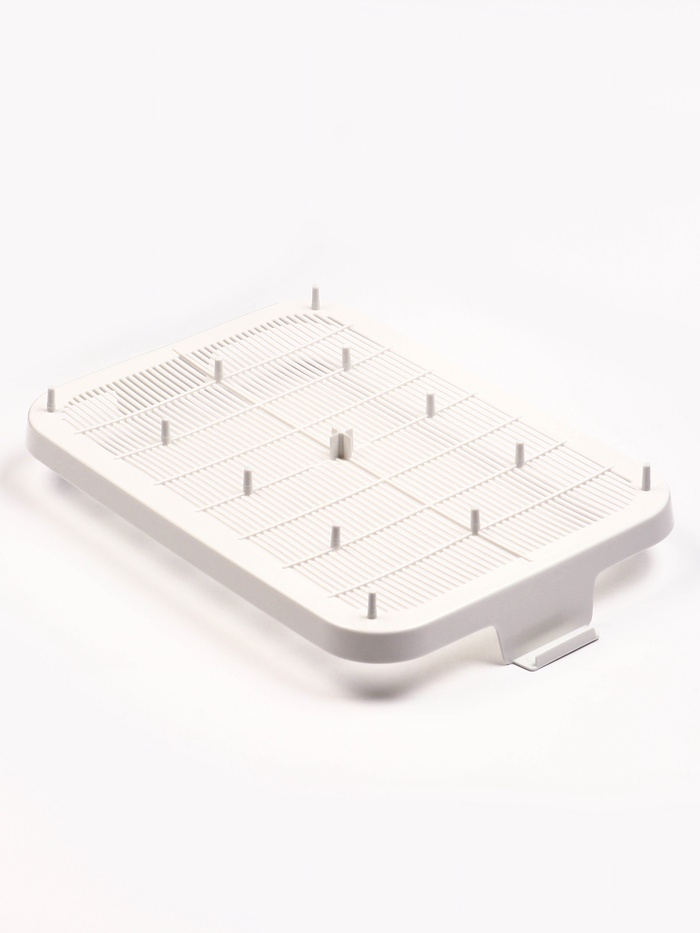 • Практичная конструкция: Съемная сетка отделяет отходы от наполнителя. Упрощает ежедневную уборку и сокращает расход наполнителя.