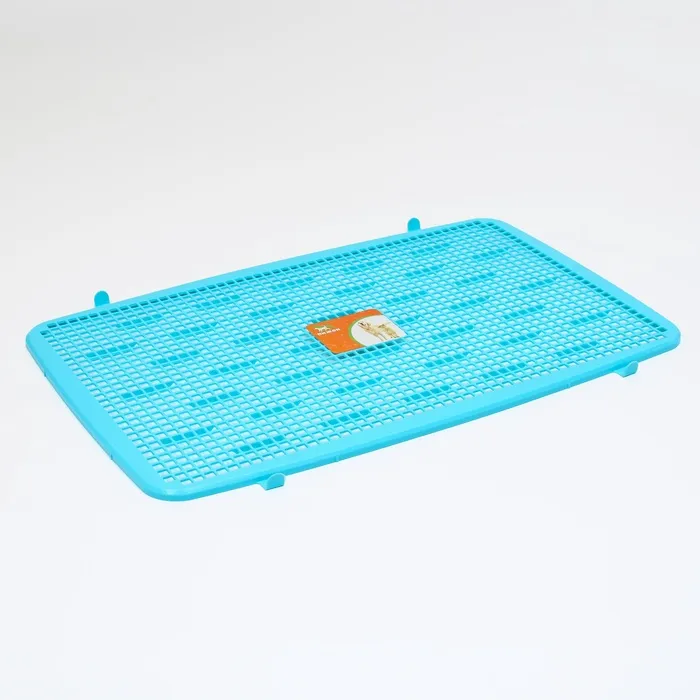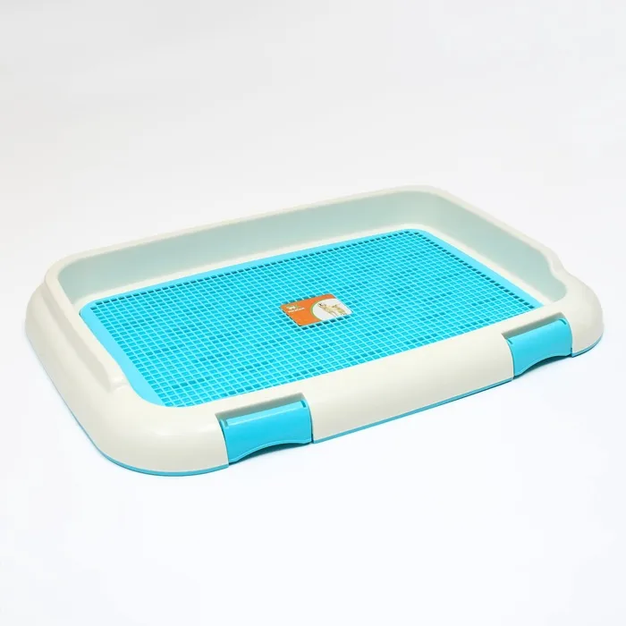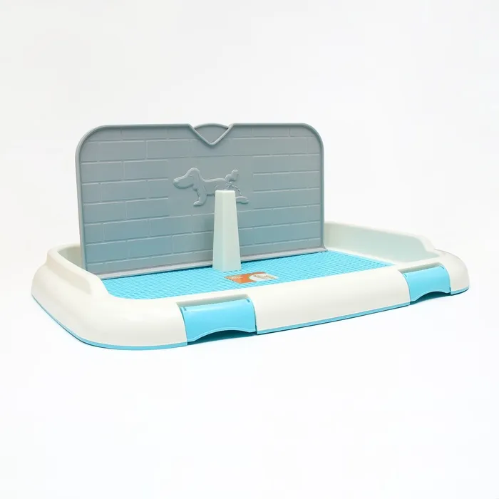 Туалет для собак 67 х 46 х 8 см, со стенкой, съемной решеткой и столбиком, голубой