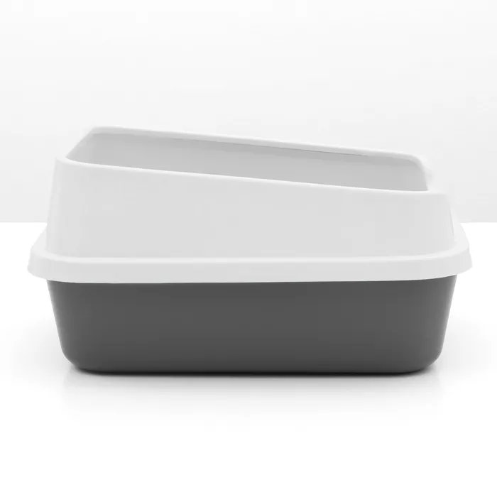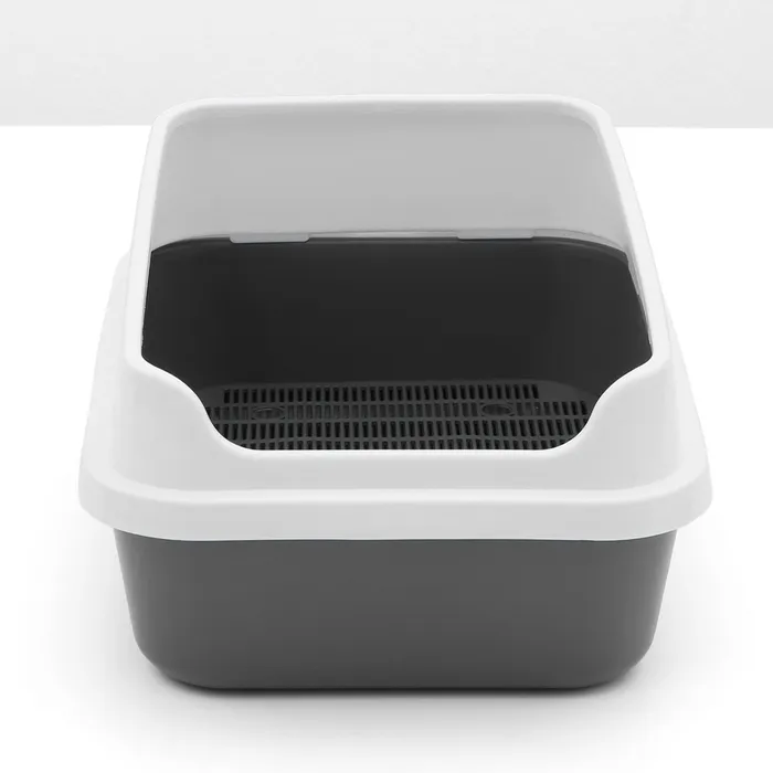 - Высокие бортики: предотвращают разбрызгивание наполнителя и поддерживают чистоту вокруг лотка.