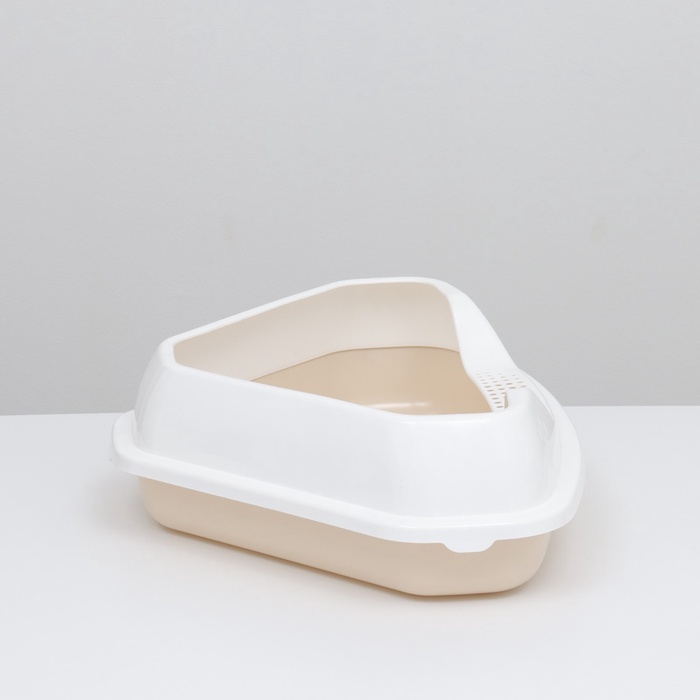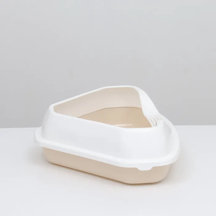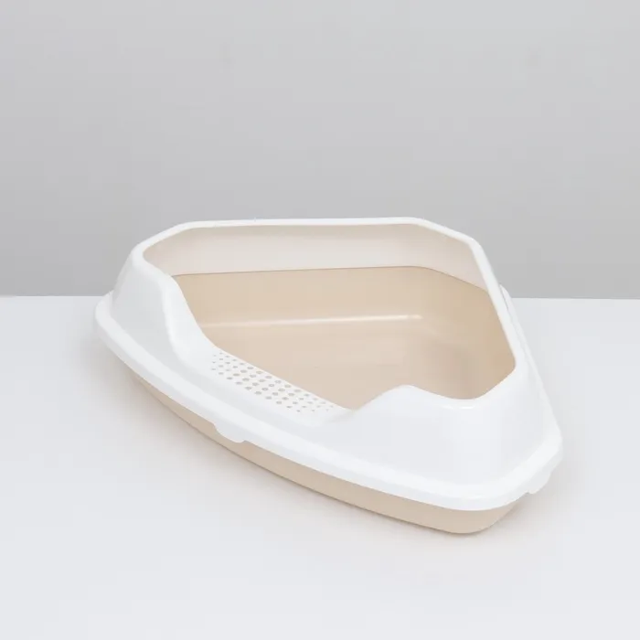 Угловой лоток для кошек изготовлен из качественного прочного пластика. Материал абсолютно безопасен для здоровья питомца и не имеет посторонних химических запахов.