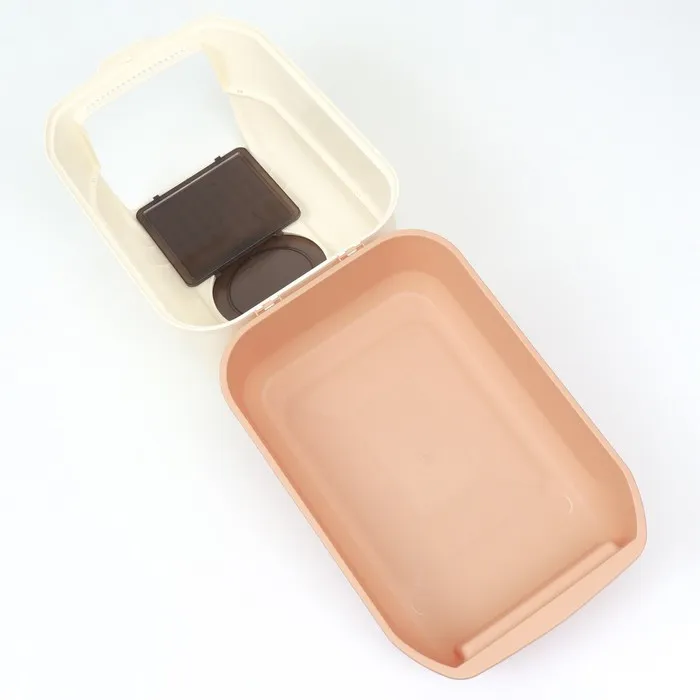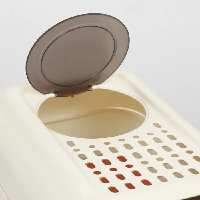 Прочные защёлки - крышка плотно крепится к лотку, что позволяет переносить туалет с наполнителем внутри, без риска просыпать содержимое.