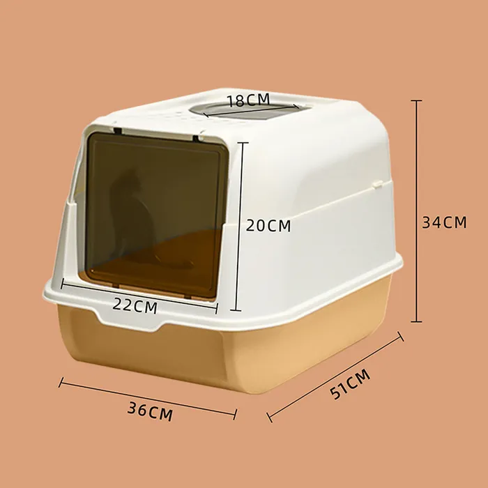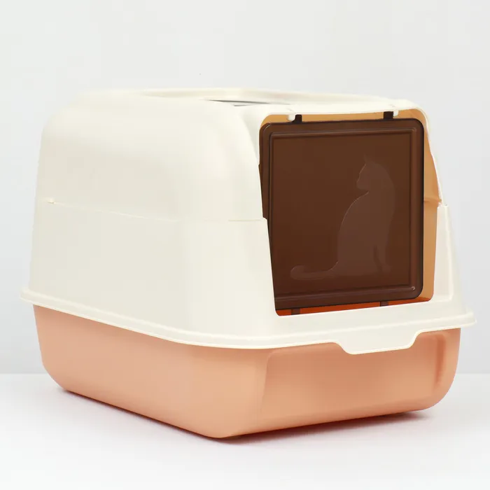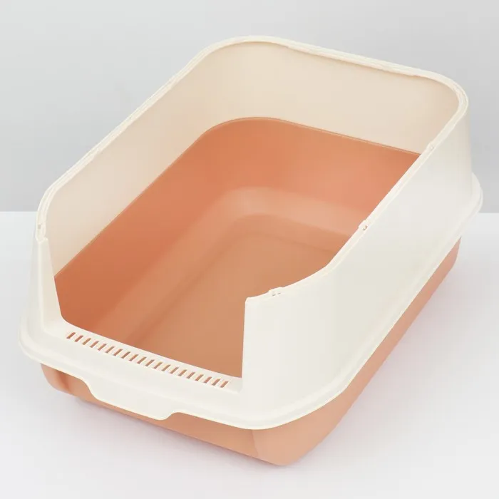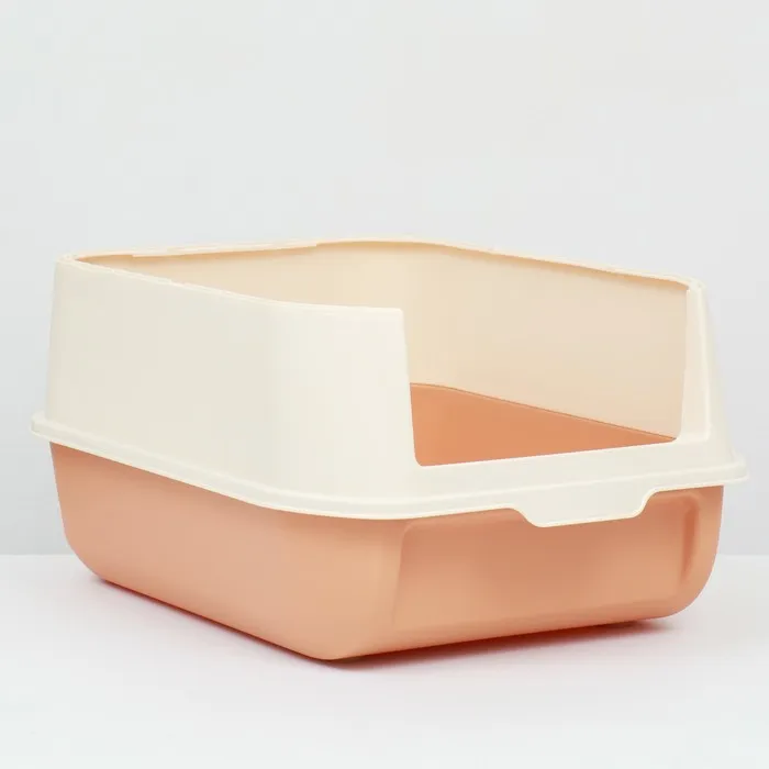 Туалет имеет пластиковый крытый корпус с высокими бортиками, чтобы предотвращает рассыпание наполнителя.