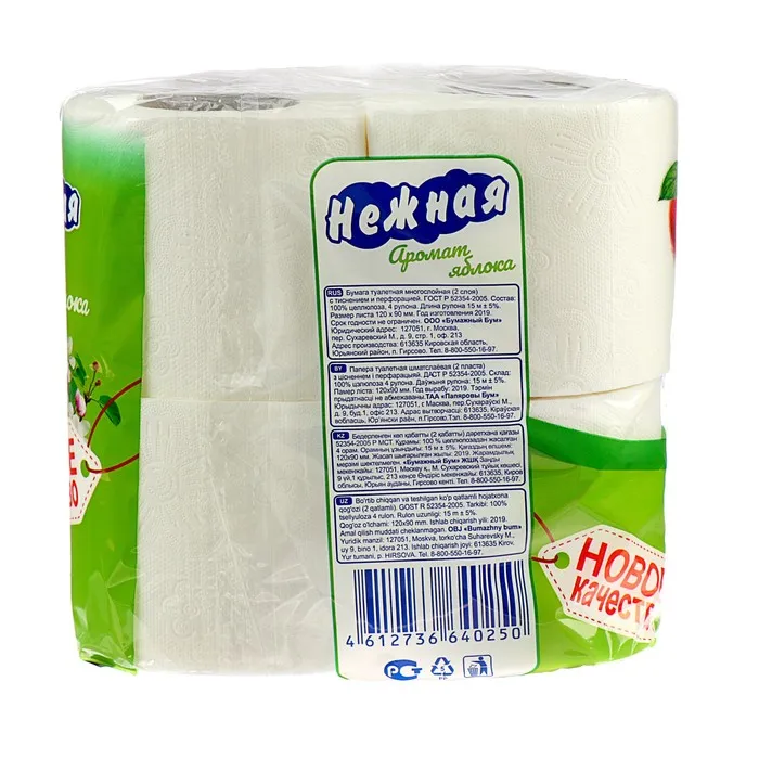 Туалетная бумага «Нежная арома яблоко», 2 слоя, 4 рулона — Характеристики