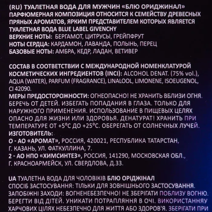Туалетная вода мужская Blu Original, 100 мл (по мотивам Blue Seduction (A.Banderas) — Характеристики