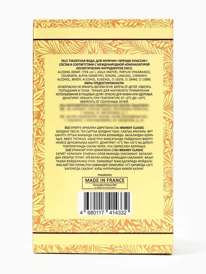 Ароматическая категория: Цветочно-древесный. Brandy Classic идеально подходит для ежедневного использования и особых случаев, подчеркивая индивидуальность, уверенность и стиль.