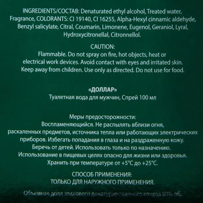 Неповторимый аромат Dollar Intense Perfume предназначен для зрелых, состоявшихся мужчин.