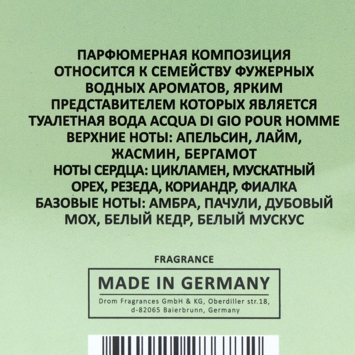 Аромат создан по мотивам Acqua Di Gio (G.Armani).