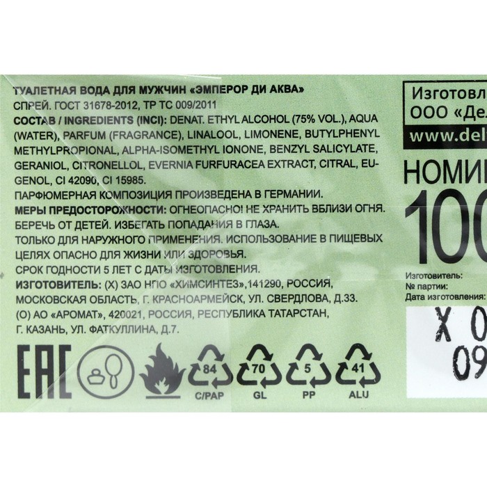 Туалетная вода мужская Emperor Di Acqua, 100 мл (по мотивам Acqua Di Gio (G.Armani) — Характеристики