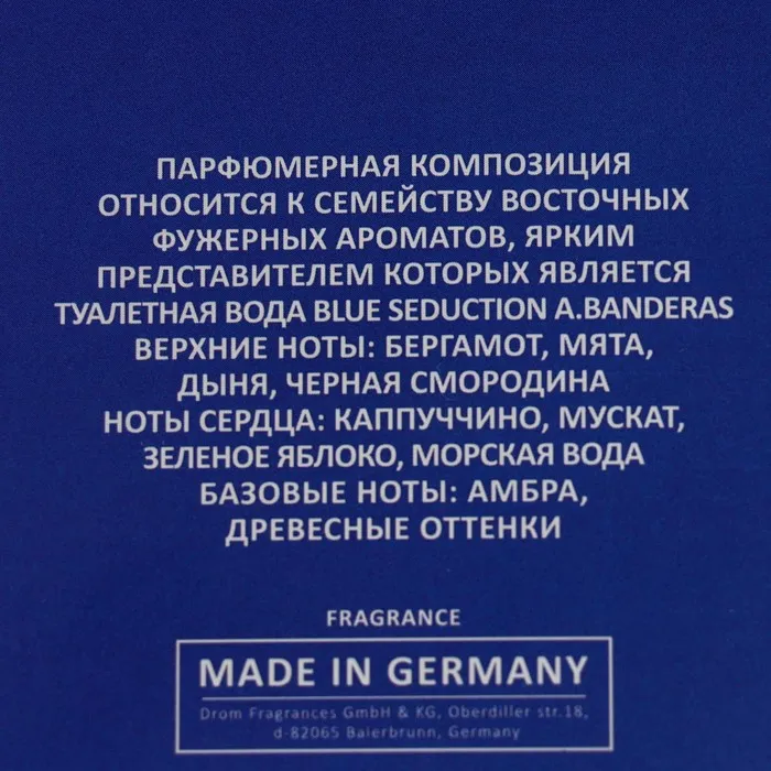 Аромат создан по мотивам Blue Seduction (ANTONIO BANDERAS).