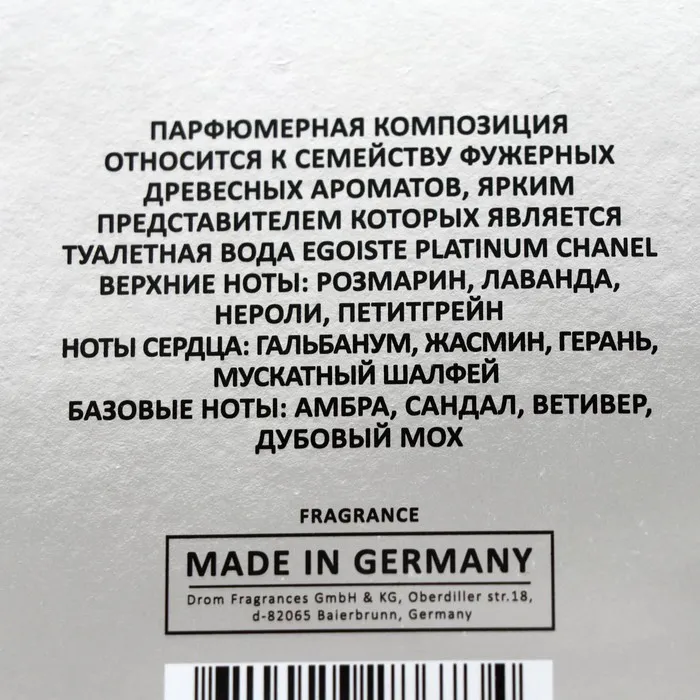 Аромат создан по мотивам Egoiste Platinum (Chanel).