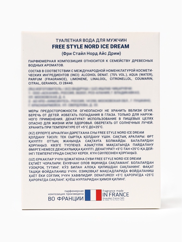 Ароматическая категория: Древесные водные. Free Style Nord Ice Dream идеально подходит для мужчин, которые ценят свежие и сложные ароматы с характером. Он прекрасно раскрывается в дневное время, особенно в теплое время года, подчеркивая энергичность, стиль и уверенность своего обладателя.