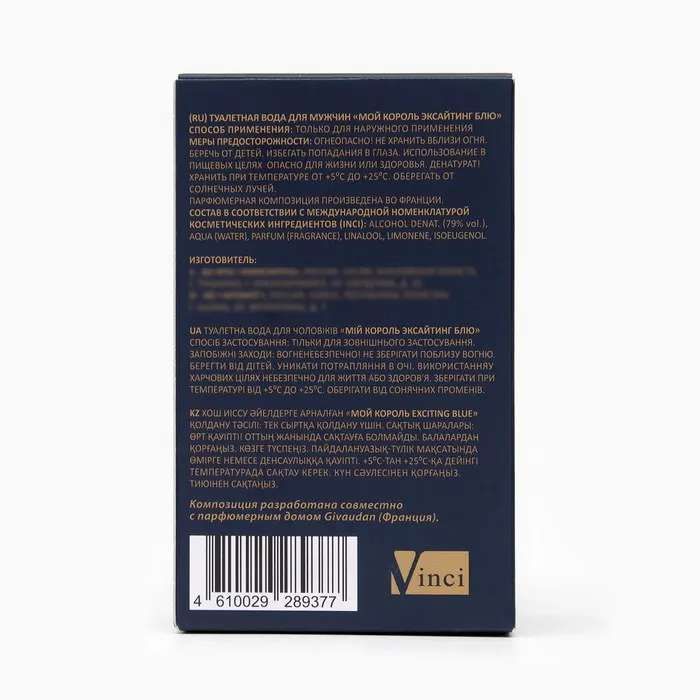 Женщин такие насыщенные оттенки зачаровывают и опьяняют до головокружения. Может быть, именно поэтому они очень часто выбирают для своих любимых этот яркий ароматный букет! С композицией Exciting Blue мужчина вполне может создать целую теорию обольщения! Он знает эксклюзивный секрет успеха у женщин, формулу шарма! Достаточно купить аромат Exciting Blue, и весь мир точно будет у его ног!