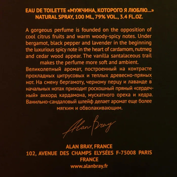 Туалетная вода мужская Мужчина, которого я люблю..., 100 мл — Характеристики