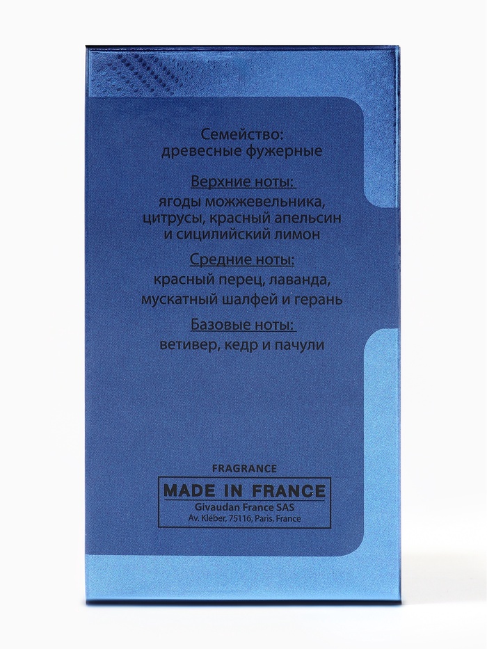 Флакон: 100 мл – элегантное воплощение современного люкса. Лаконичный дизайн подчеркивает мужественность и статус, отражая философию уверенности и утонченности, заключённую в каждом флаконе.