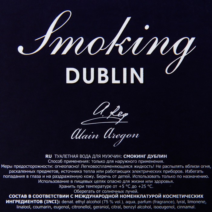 Туалетная вода мужская SMOKING DUBLIN, 63 мл — Характеристики